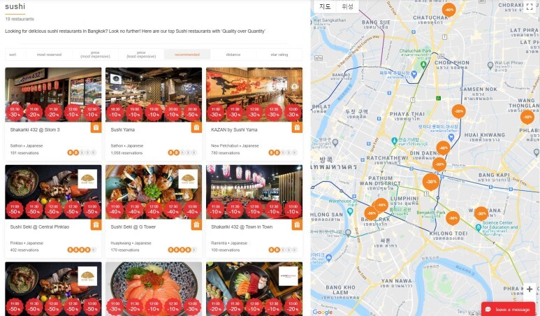 이런식으로 스시를 선택한 경우 지도에 위치와함께 할인율을 보여줍니다.