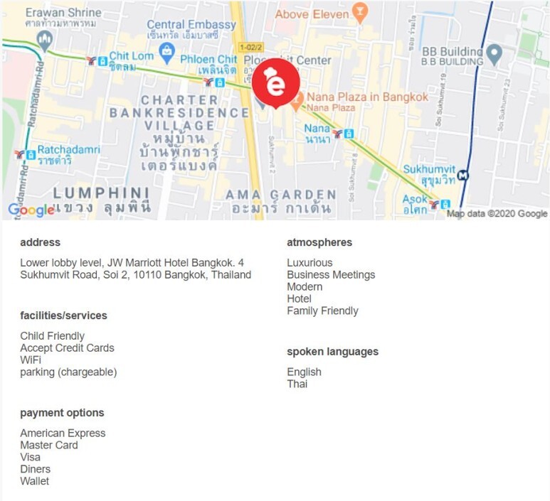 밑에 설명에는 주소와 매장분위기, 지불수단, 서빙언어 등 설명이있습니다.